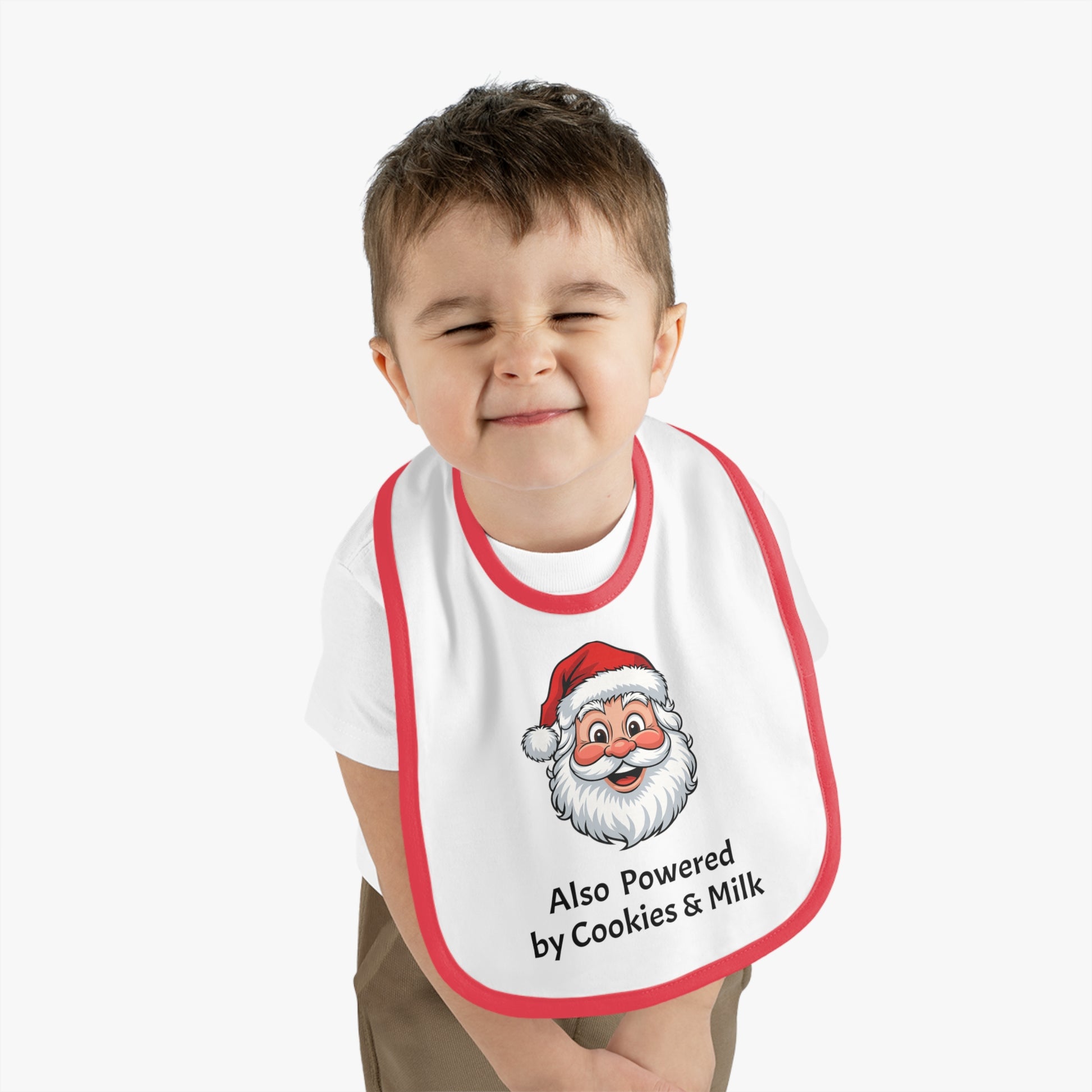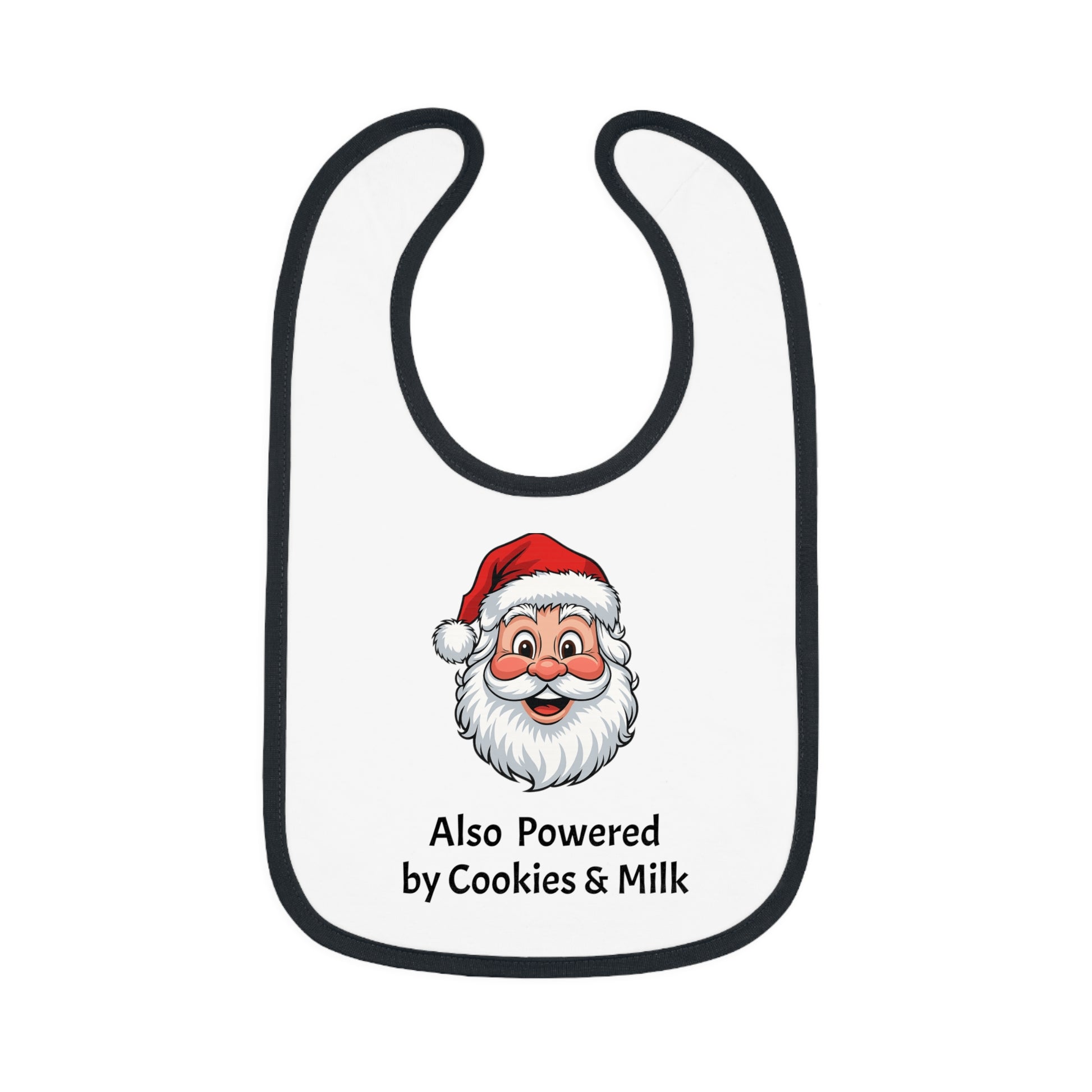 Also Powered by Cookies & Milk - Baby Bib with Santa Design, Baby Shower Gift, Holiday Bib, Fun Feeding Accessory, Perfect for Santa Lovers
