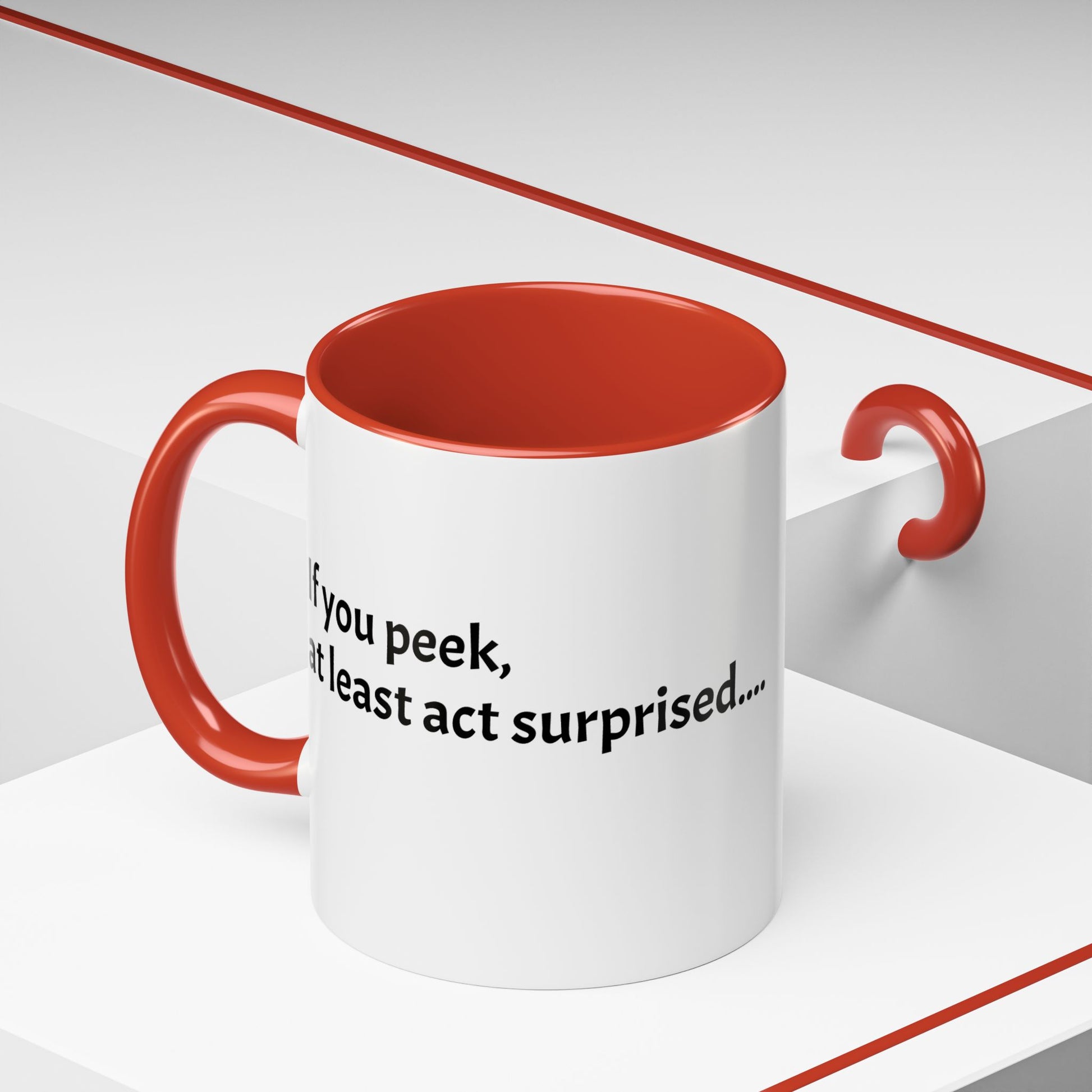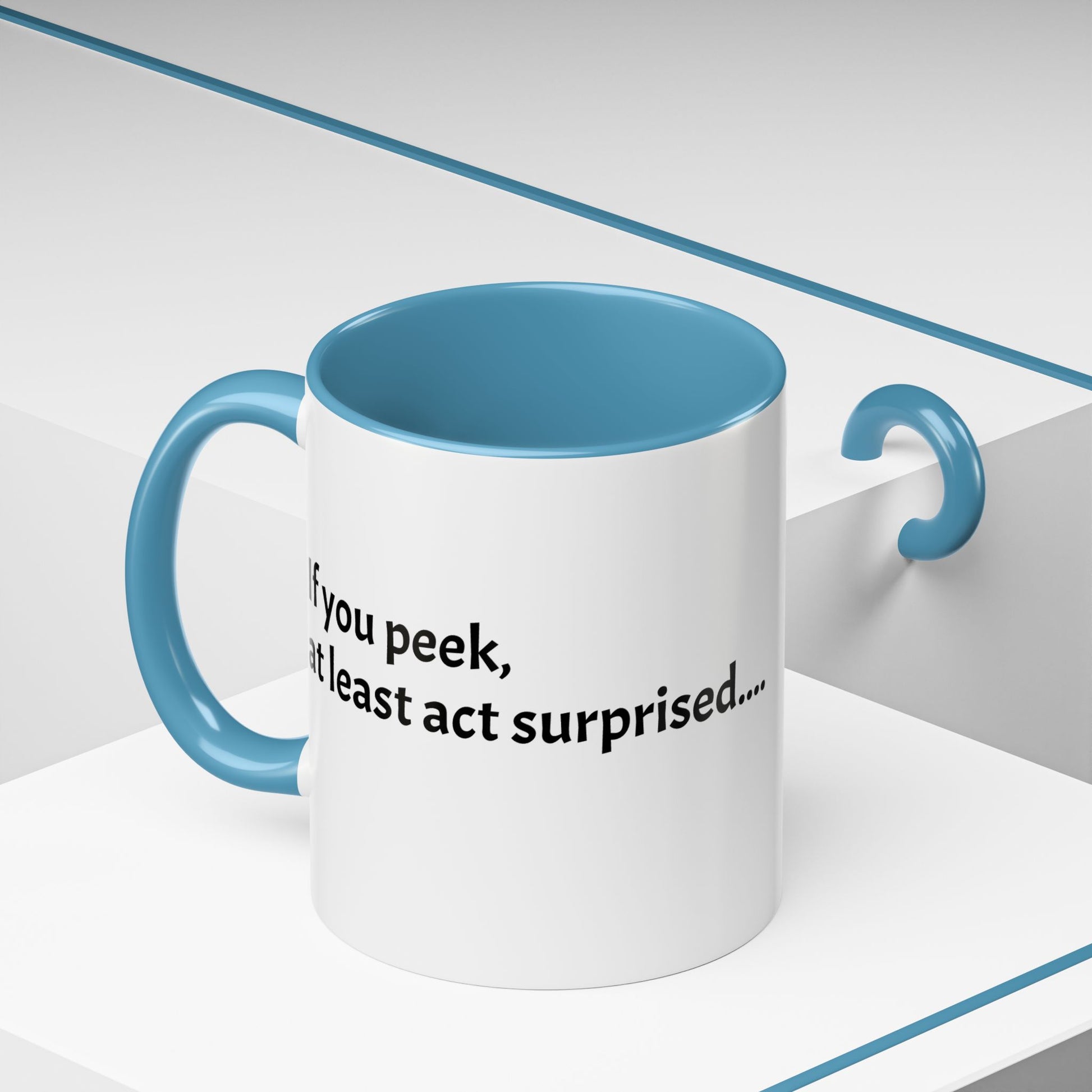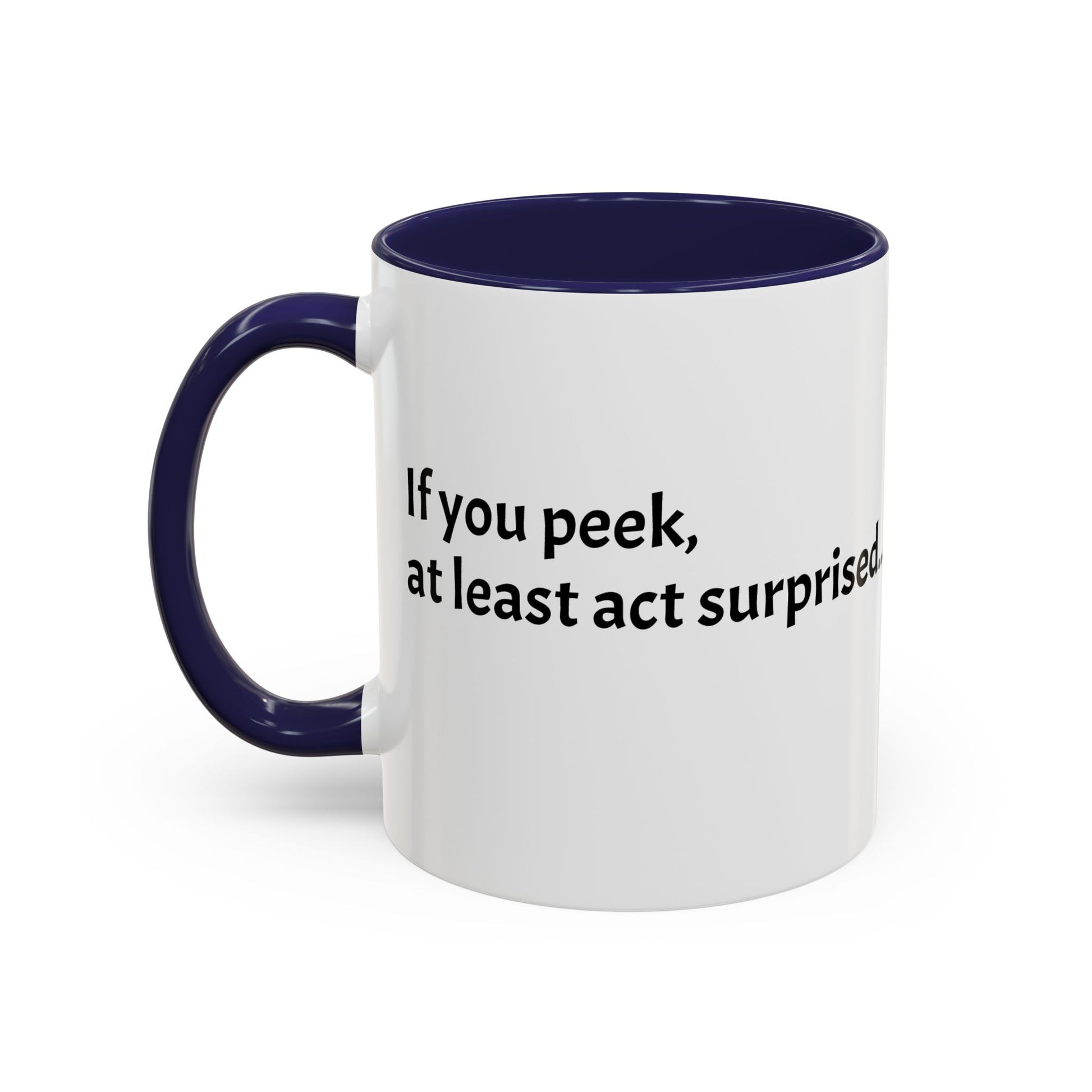 If you peek, at least act surprised - Ceramic Coffee Mug