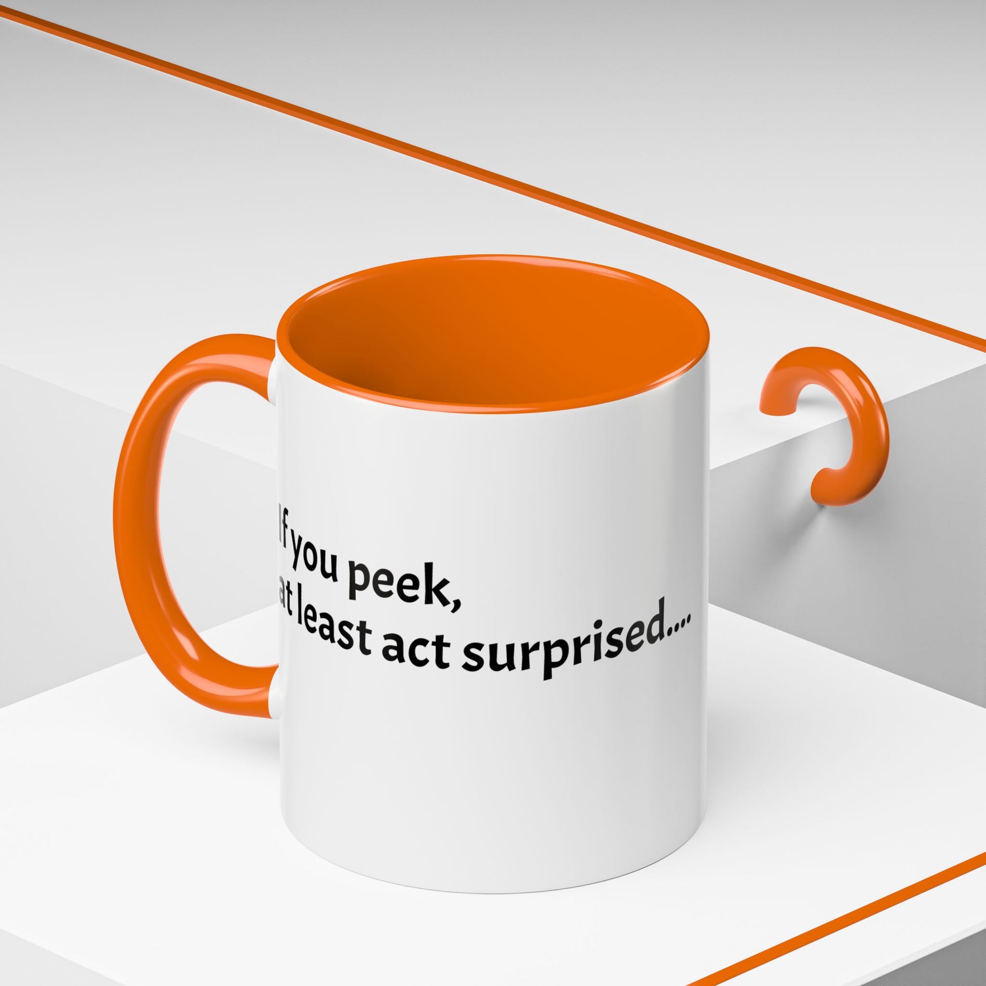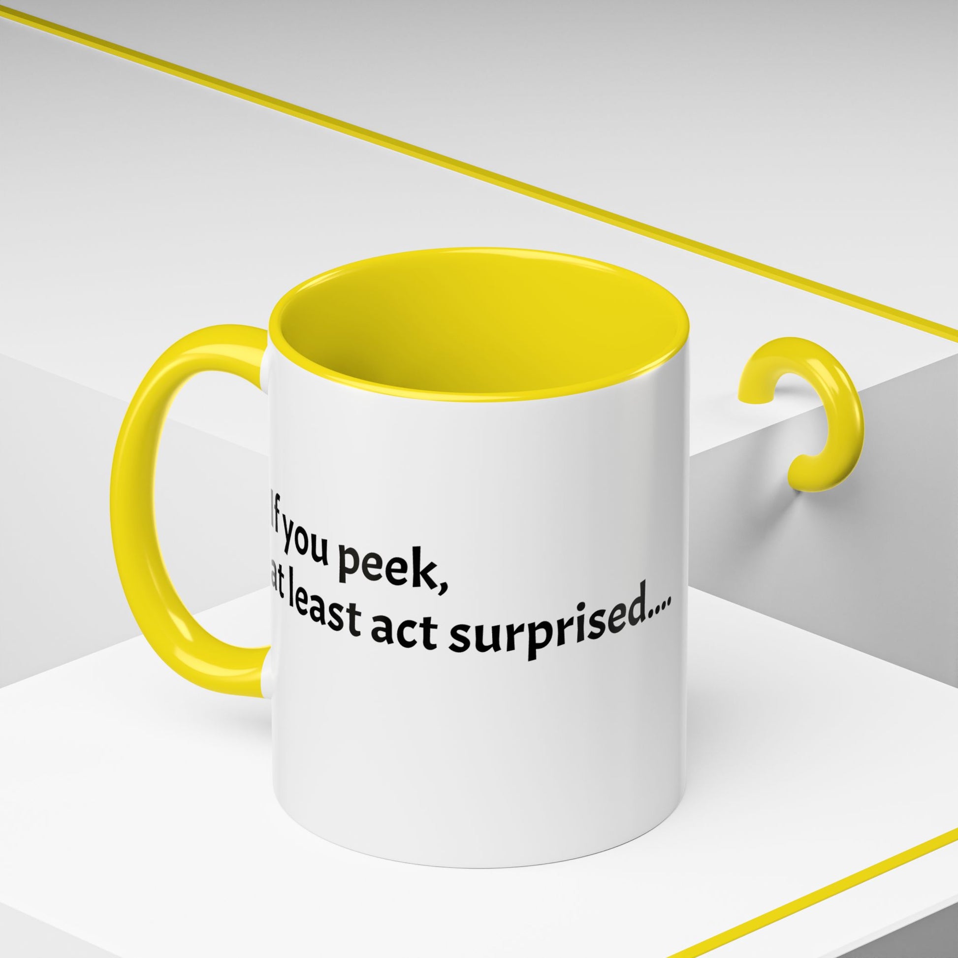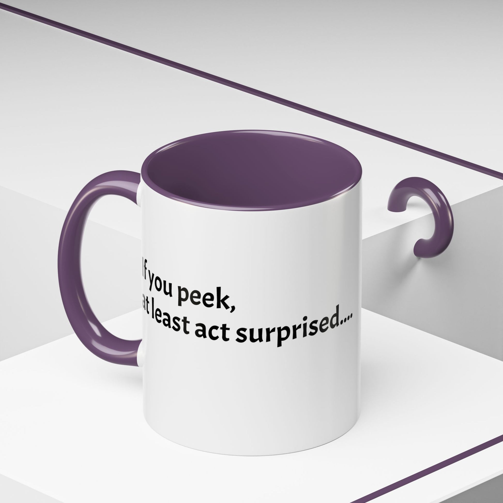 If you peek, at least act surprised - Ceramic Coffee Mug
